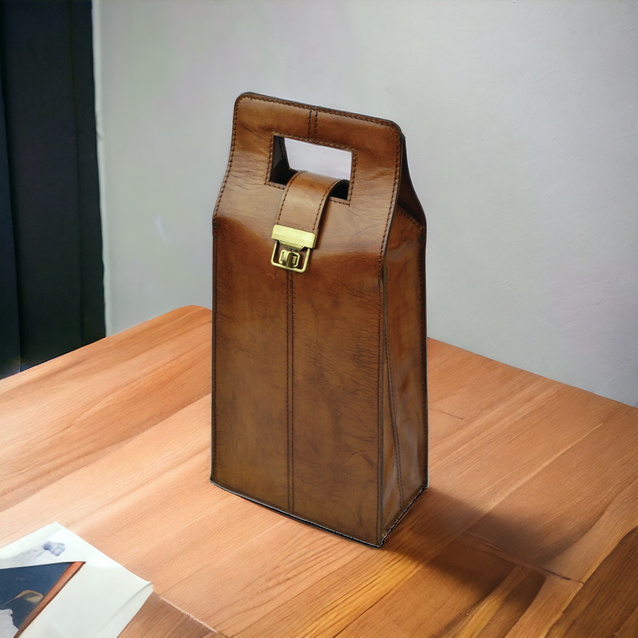 Double Wine Holder is formerly a product described in just three words – intact, invogue & impervious. It is spacious and enables handling two wine bottles simultaneously in the classiest way possible. The handle is designed just the same as the Single Wine Holder, only the dimensions differs for its capacity extends to hold a two.